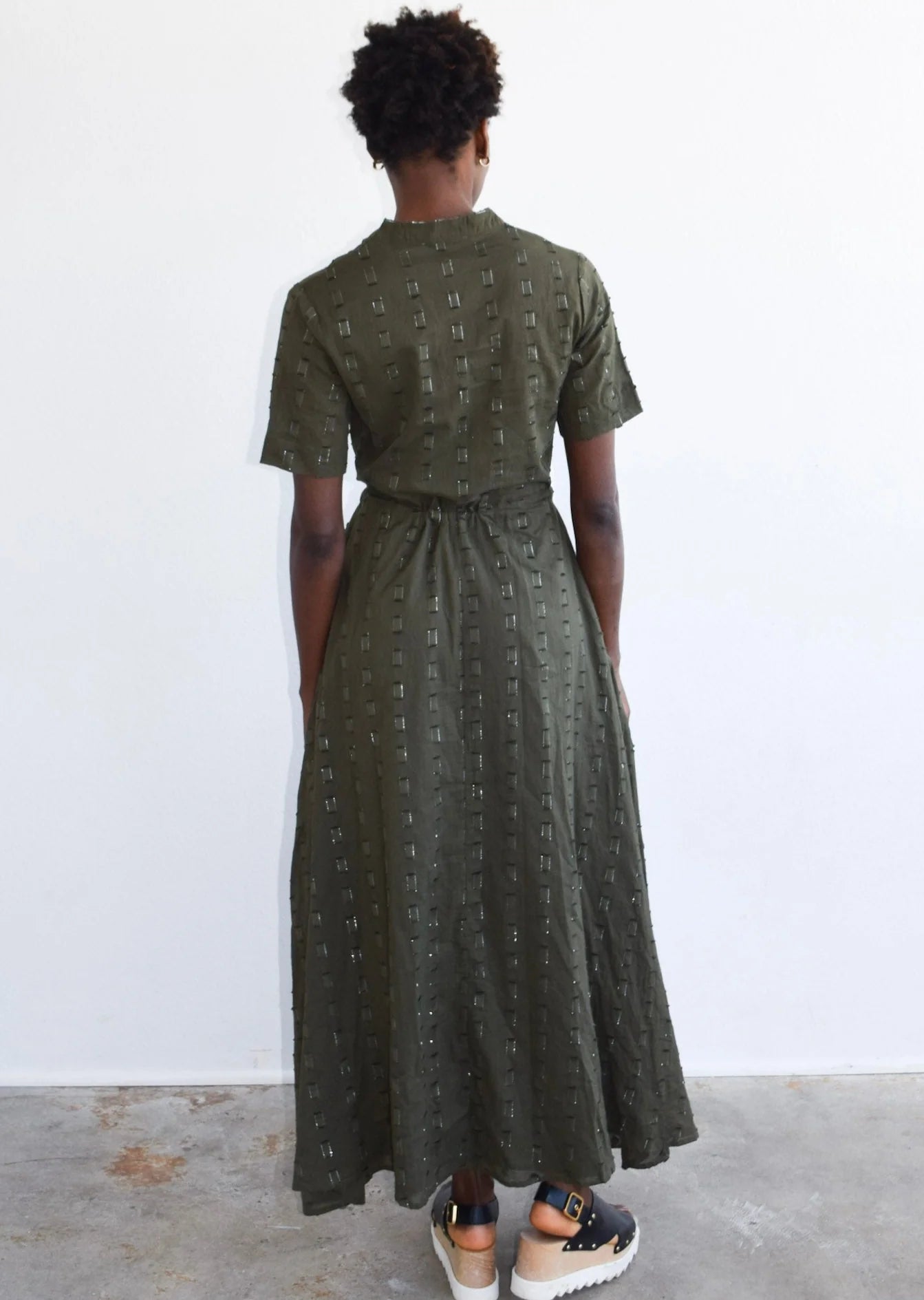 Meet the Kelli Short Sleeve Maxi in Olive Geo – your new go-to for effortless style and comfort! This elegant shirt dress features a maxi length, short sleeves, and an adjustable drawstring waist for a flattering fit. Made from textured olive green fabric, it offers a sophisticated yet versatile look. Perfect for any occasion, dress it down with sandals for brunch or elevate it with heels for an evening out. The Kelli Maxi is all about turning heads and feeling fabulous!