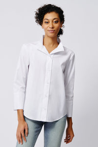 Greta Placket Front Shirt - White Stretch
